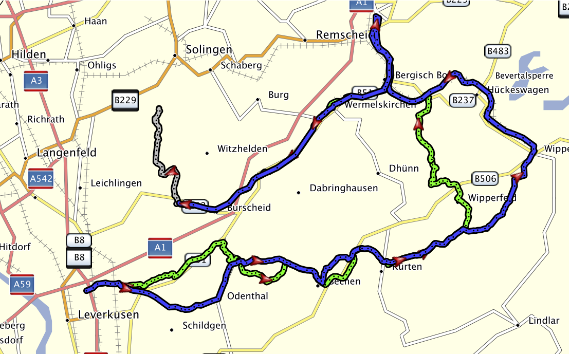 EDIT: Hier eine Strecke mit Abkürzung. Fällt dann Wipperführt und Lennep raus gpsies.com/map.do?fileId=ozknvxyfzoesgjfq