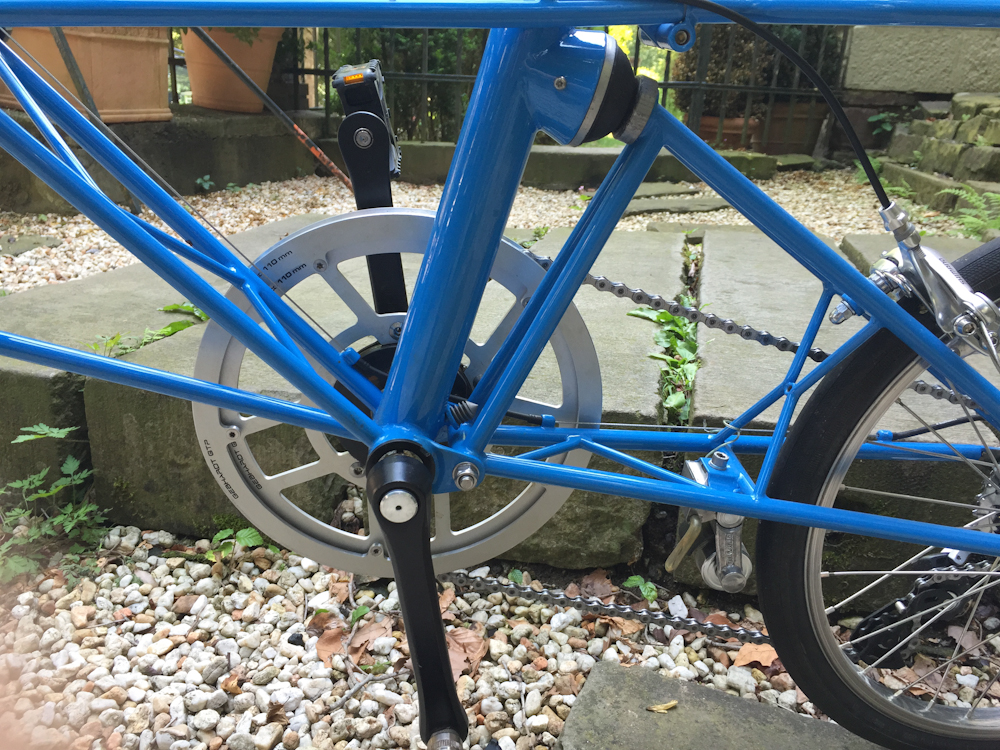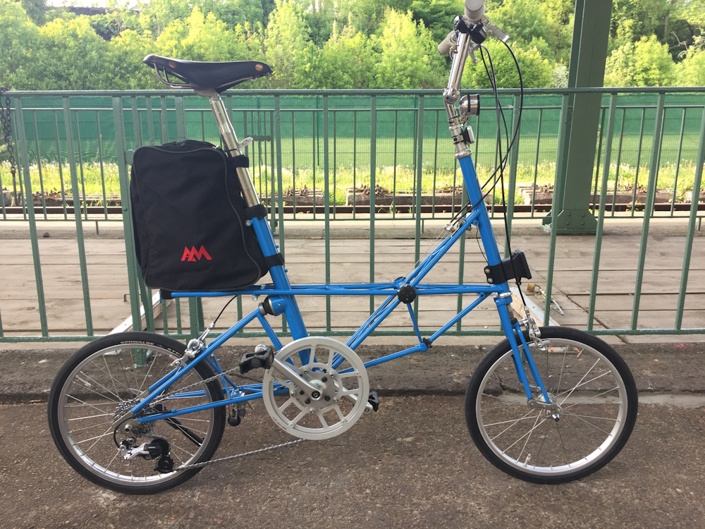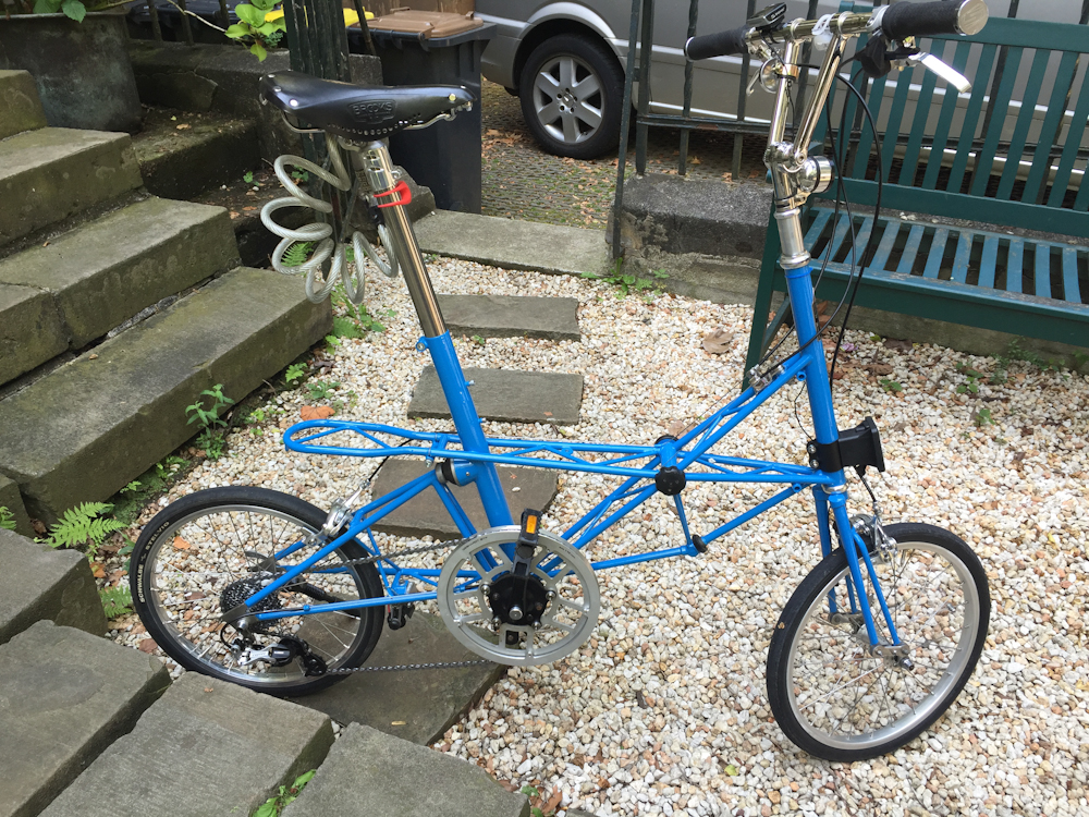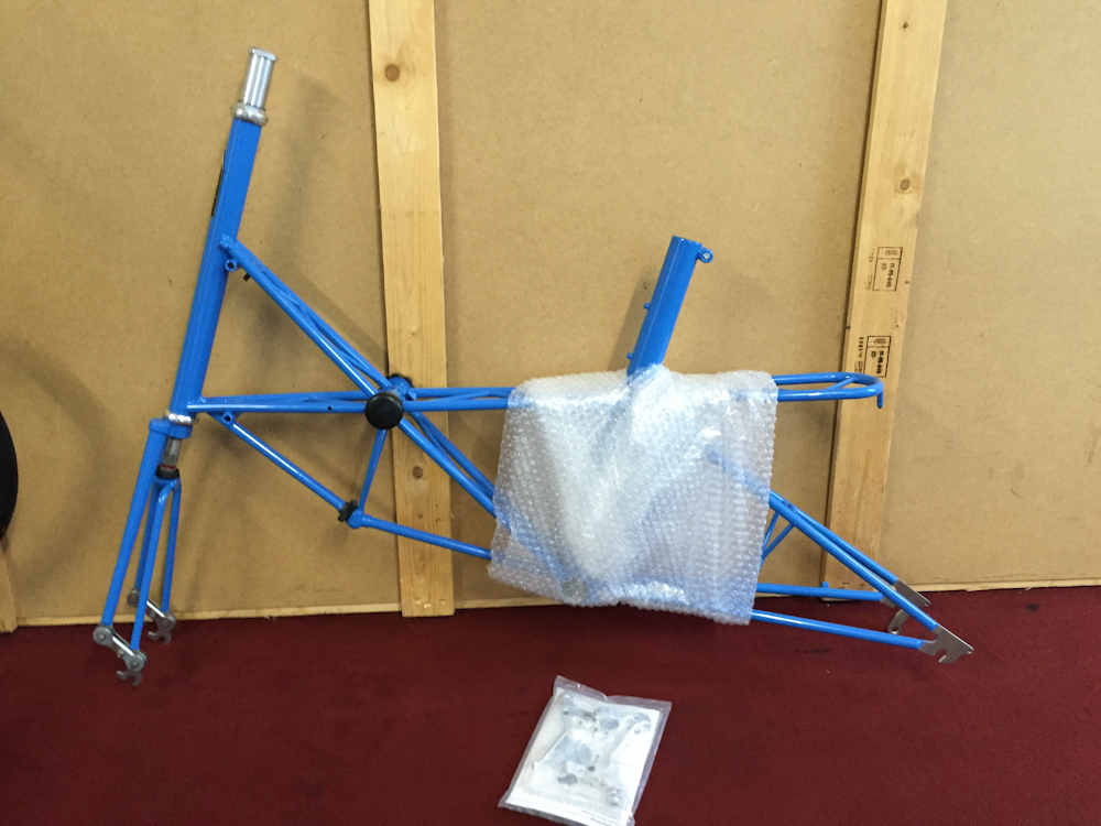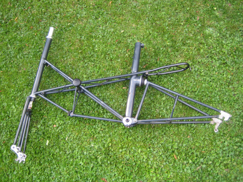 Mein großer Dank gilt hier Herrn Hammel, welcher mit seinem Mitarbeiter Herrn Demel eine so einwandfreie, perfekte Ab- und Neulackierung und den Aufbau diverser „Kleinteile“, wie Federung, Gebhardt Kettenblätter mit Schutzscheiben (wobei die Kettenschutzscheiben verändert wurden – sieht jemand inwiefern?), neuer Moulton-Sattelstütze, Bremshebel, usw., „beisteuerte“.