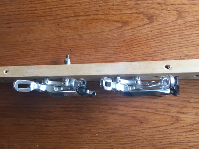 Ich habe zusätzlich beide Bremsen teil-zerlegt und den Befestigungsbolzen getauscht, so dass jetzt die Vorderradbremse hinten und die Hinterradbremse vorne ist (der Rest ist ja gleich).