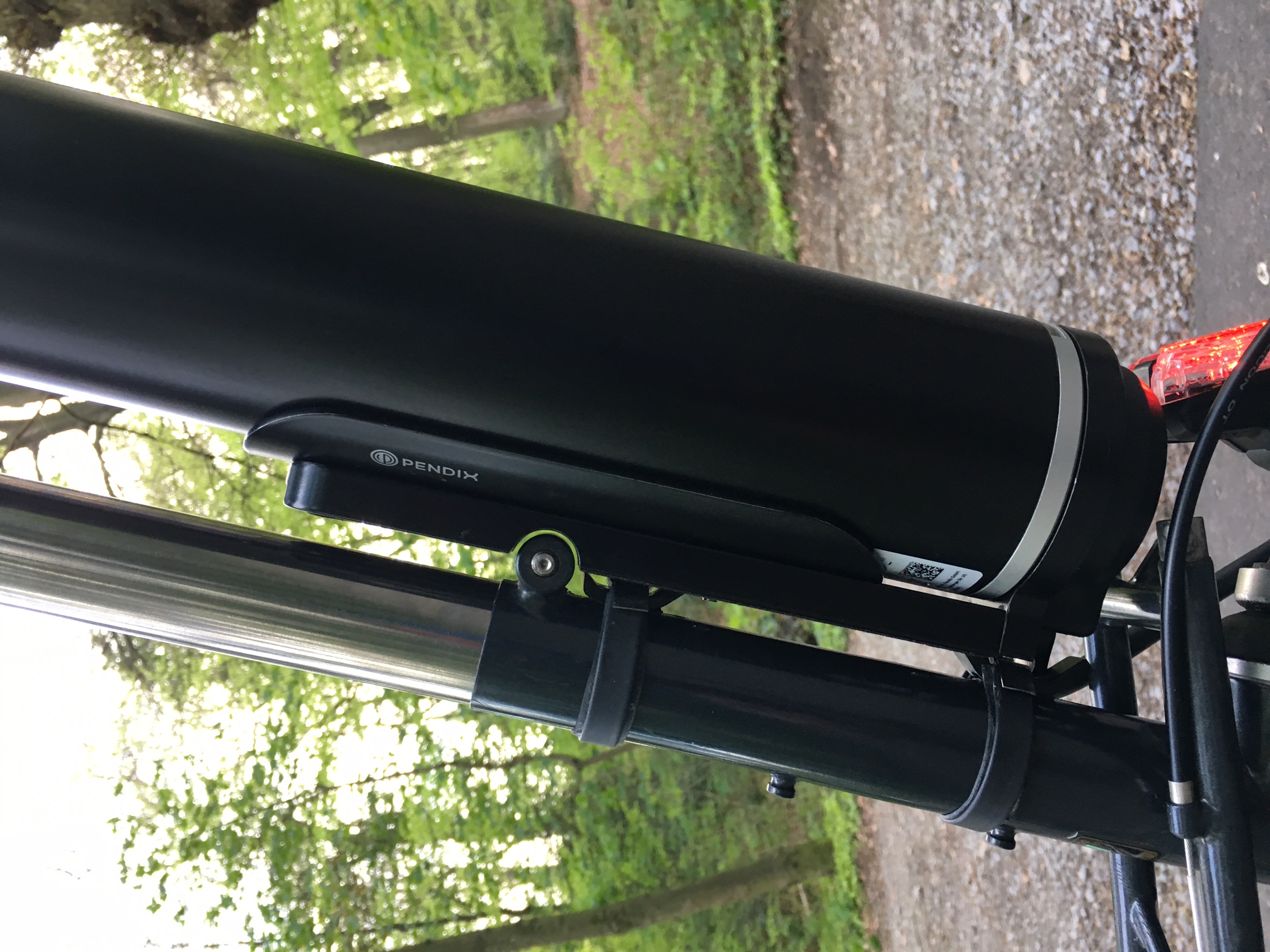 Habe nun den Akku an der Sattelstange montiert, da sich der Akku, der Große zumal, immer ein wenig wie ein Anhänger angefühlt hat.