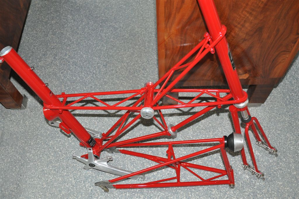 das ist der Rahmen eines 1964er Moulton Deluxe. Neu Lackiert.