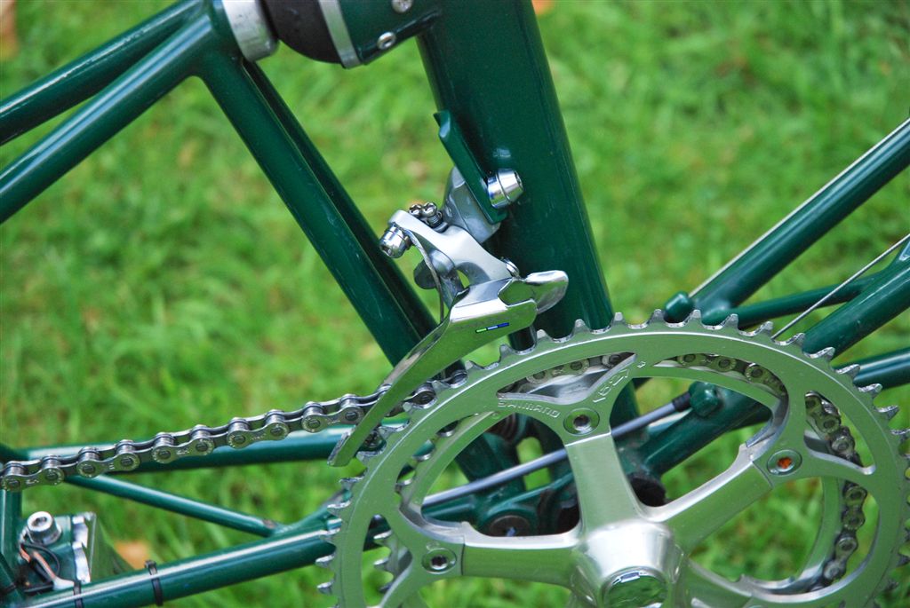 Dem genauen Beobachter wird nicht entgangen sein, dass die o.g. Edelstahlteile hier nicht verbaut wurden; die kommen ins andere; diese Schaltung ist auch aus dem anderen übernommen, denn in diesem Grünen Jubilee war ja zuvor die Rohloff (welche ich aber sehr vermisse – bes. in der Stadt) montiert.