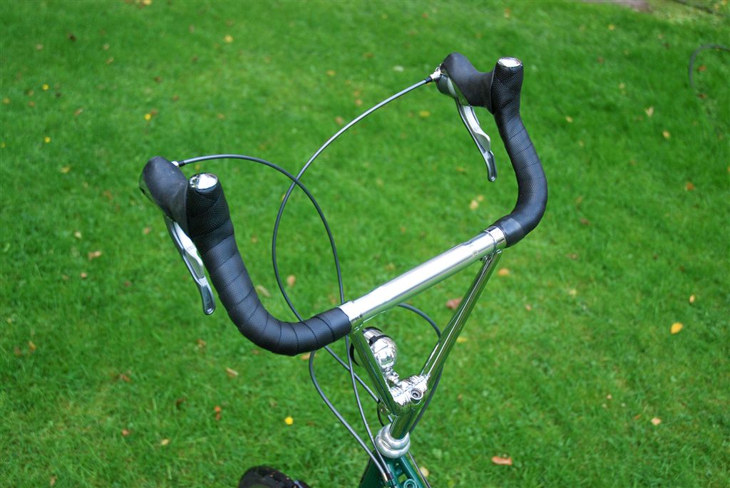 Verbaut sind alles die originalen alten Shimano 600er Komponenten; bis auf die STI`s, denn auf Schaltungshebel am Rahmen hatte ich kleine Lust (mehr). Die habe ich mir gebraucht gekauft.