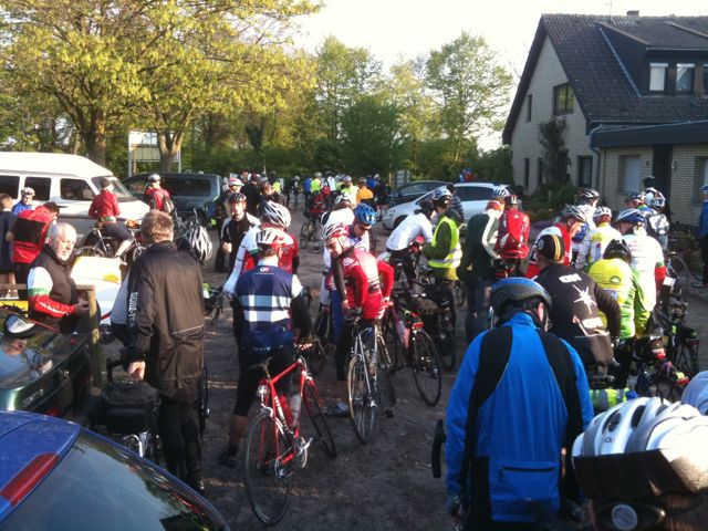 0 - Wankum. Niederrhein. Es ist etwas frisch, aber sonnig. Kurz nach 8 sind alle auf der Straße. Ich will ruhig starten - und fahre hinterher.